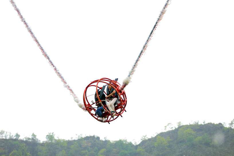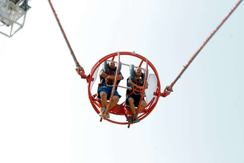 Experience the world upside down with a 180 feet throw above the ground in just 2 seconds in a cage